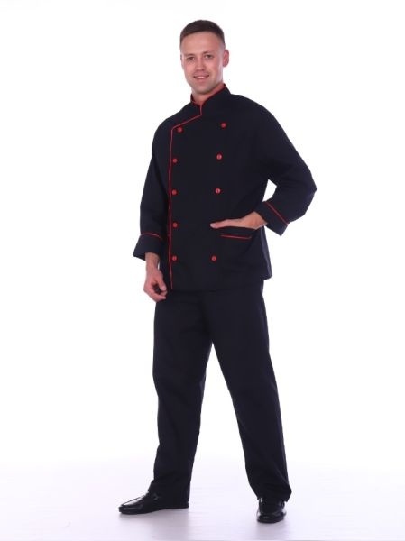 Костюм повара мужской гладкокрашеный черно-красный
