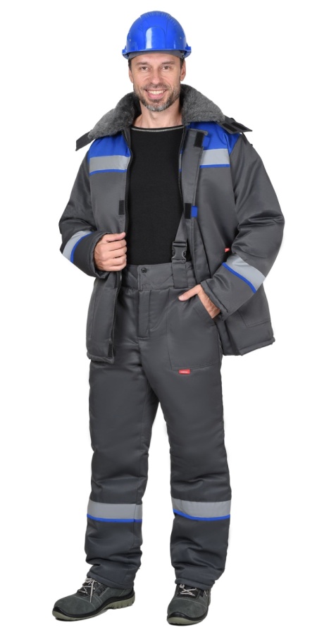 Костюм СИРИУС-РОСТ-АРКТИКА куртка, брюки, т.серый с васильковым и СОП 50 мм