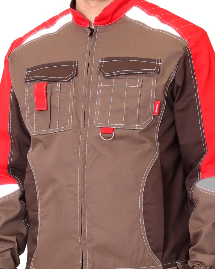 Куртка СИРИУС-ФАВОРИТ-МЕГА светло-коричневая с коричневым, красным и СОП