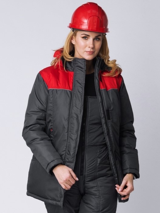 Куртка зимняя женская Сакрин (Дюспо), темно-серый/красный