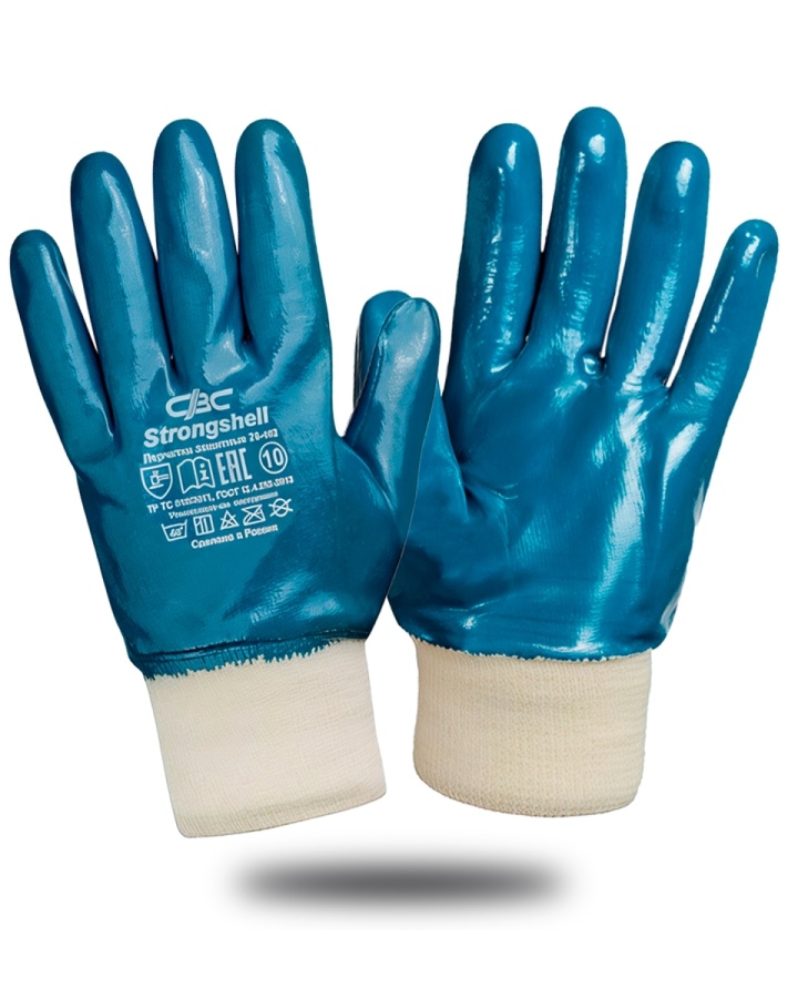 Перчатки Стронгшелл (Strongshell) х/б с полным нитрильным покрытием манжет р.10