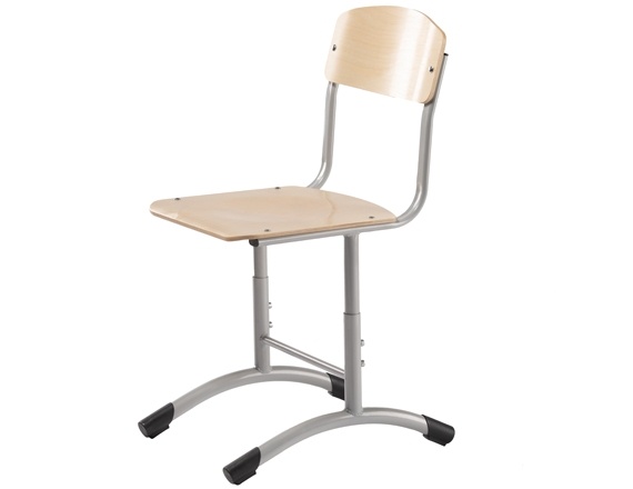 Стул изготовлен на металлокаркасе из тонкостенных стальных труб круглого сечения ⌀32х1,5 мм, ⌀32х1,2, ⌀25х1,2 и ⌀22х1,0 мм, а так же плоскоовального сечения 30х15х1,2 мм. Металлокаркас окрашен защитной полимерно-порошковой эмалью. Каркас представляет собой телескопическую конструкцию, высоту его можно устанавливать в трёх положениях, закрепляя четырьмя винтами М8. Концы труб закрыты пластиковыми заглушками и заглушками-опорами. Сиденье и спинка выполнены из объёмно-формованной гнутоклееной фанеры (шпон березы) толщиной 9 мм со сферическим выжимом на сидении и эргономичным изгибом на спинке. Форма сиденья и спинки способствует сохранению осанки. Спинка и сиденье покрыты экологически чистым полиуретановым бесцветным лаком, который не имеет запаха. Соединение каркаса с фанерой осуществляется с помощью заклепок 4,8х18. Стул изготавливается в двух ростовых группах в трех диапазонах регулирования (3-5, 5-7) в соответствии с ГОСТ 11016-93 (ИСО 5970-79).