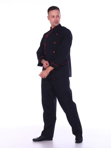 Костюм повара мужской гладкокрашеный черно-красный
