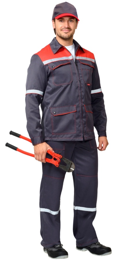 Костюм СИРИУС-МЕХАНИК куртка, брюки серый с красным и СОП