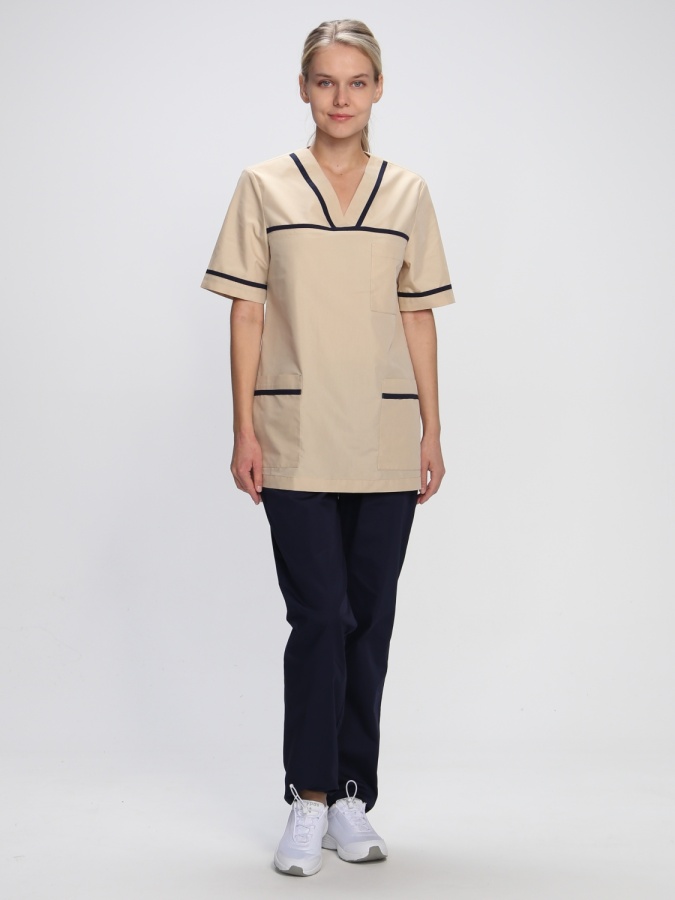 Костюм женский Ирис (тк.ТиСи), бежевый/т.синий