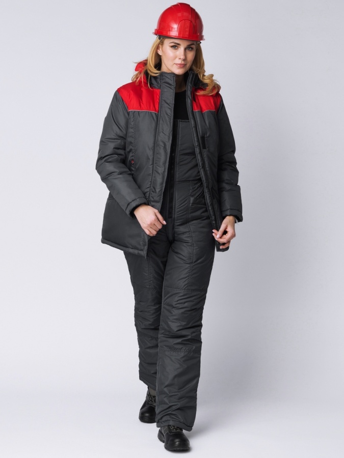 Куртка зимняя женская Сакрин (Дюспо), темно-серый/красный