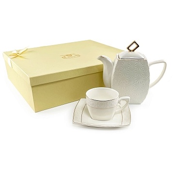 Набор чайный 13 предметов: кружки 230 мл - 6 шт; блюдца 15*15 см - 6 шт; чайник - 1,0 л